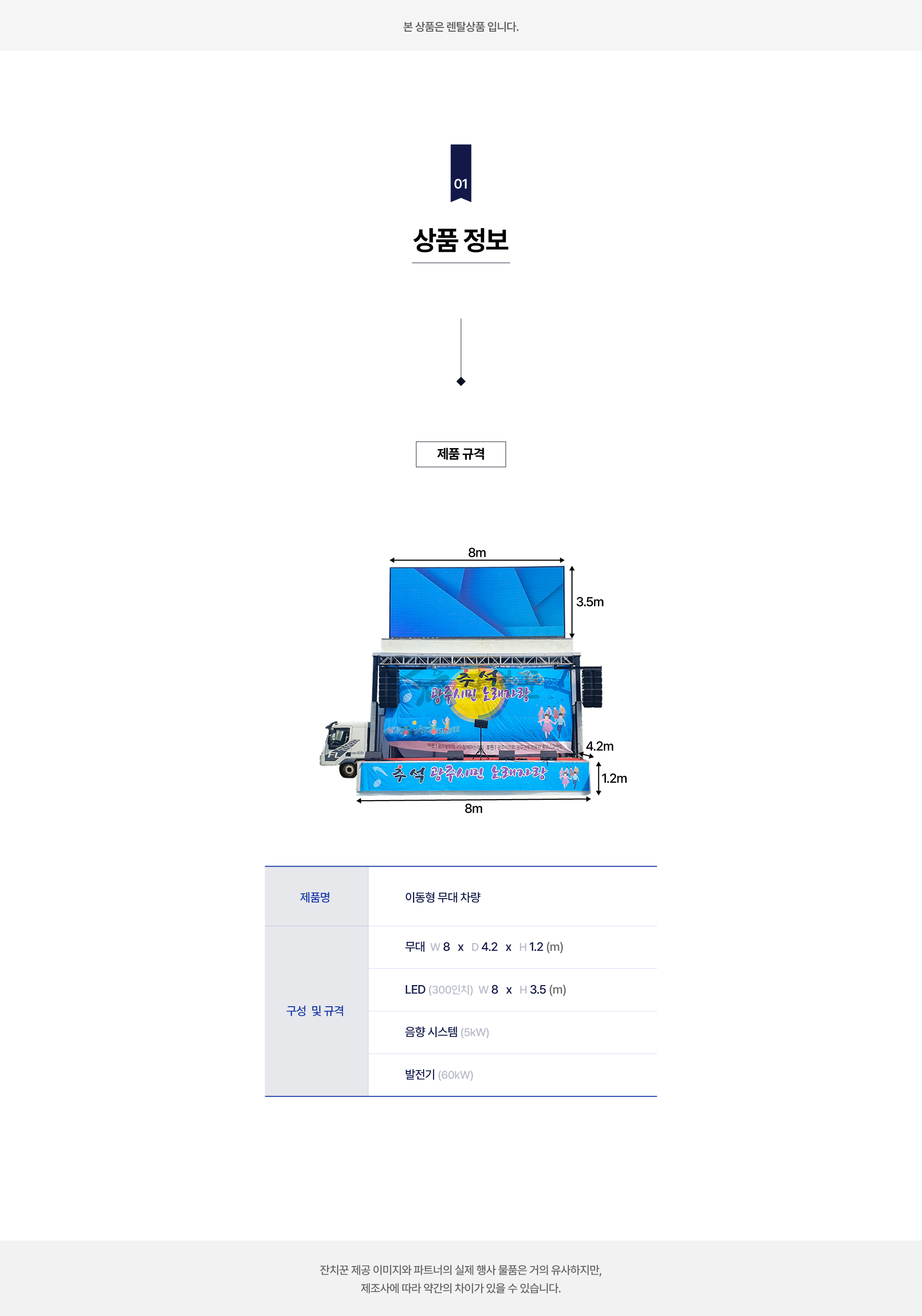 장비 대여 + 운반· 설치 + 운영 및 연출이 포함된 금액입니다.